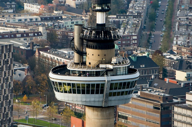 【歐洲之桅透明旋轉電梯Euroscope】登上位於98公尺高的全景層,再搭乘透明旋轉電梯上升到最高的185公尺處,30度旋轉欣賞鹿特丹一覽無遺的天際線。