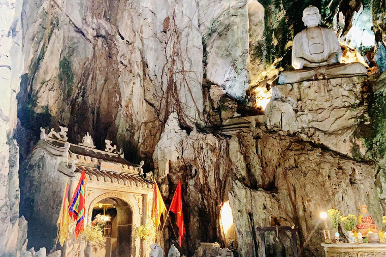 【五行山Marble Mountains(含電梯上)】欣賞越南中部秀麗的山水風景;此山乃根據五行來排名:金、木、水 、火、土的五座山,其中以水山最大最高也最著名。水山上有不少寺廟和洞穴,昔日占婆族佔領時期是崇拜印度神祇的聖地,如今已被改建為鎮山廟宇,同樣也保留了戰爭時的痕跡,這些磨滅不了的歷史無時不在告誡著人們戰爭的殘酷和無情。