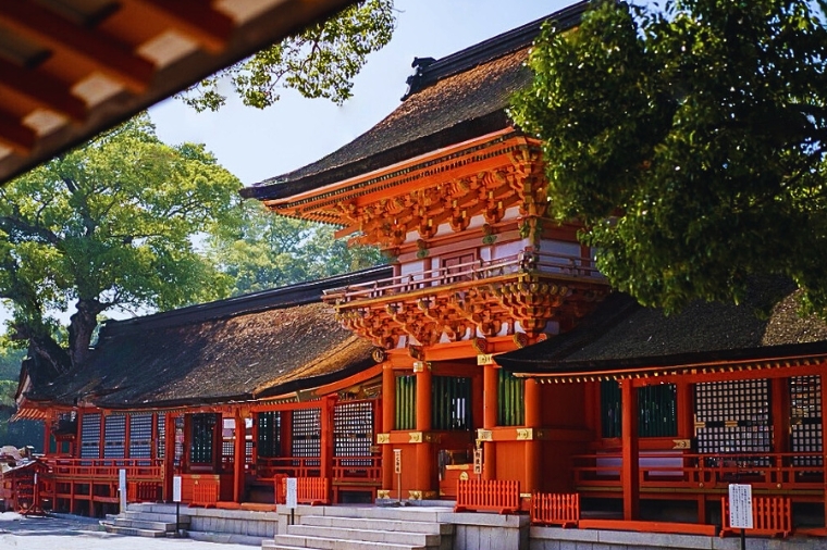 【宇佐神宮】以其壯觀的櫻花而聞名,每年春天,約有500株櫻花樹在境內盛開,吸引大量遊客前來賞櫻。 宇佐神宮的櫻花主要集中在參道兩旁、本殿周圍以及神苑等區域。 其中,染井吉野櫻是主要的品種,花朵盛開時,雪白的花瓣與朱紅的神社建築形成鮮明對比,景色十分美麗。