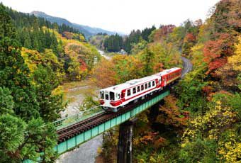 【秋田內陸鐵道】位於日本東北是縱貫秋田縣北部的本地鐵道路線,全長94.2公里,也被稱之為「微笑鐵道」,復古列車沿途經過的景色隨著四季變化,可欣賞溪谷、鐵橋等山色景緻,沿途的風景與人文體驗讓人樂而忘返,一年四季皆魅力無比。