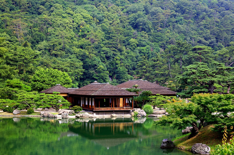 【栗林公園】在園林文化遺産中,有國家指定的特別名勝。其中,栗林公園最大。它以深綠色的紫雲山爲背景,巧妙地分布著六個水池和十三座假山。作爲江戶時代初期,以有著近四百年曆史著稱的環遊式大名園林,栗林公園有著優越的地域劃分,也有點景石,同時又富有木石的雅趣。栗林公園的春夏秋冬有著不同的風光。這裏有一千顆姿態優美的松樹,景象可以說是一步一個變化,非常美麗。栗林公園經曆了漫長的歲月,被人們所喜愛,一直留存到現在,如今已經成爲不可替代的文化遺産。