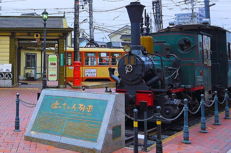 【少爺列車博物館】自明治20年創立以來,在珍藏的資料裡,追尋著作為松山市民雙腳而一直賓士伊予鐵的歷史,是令鐵道粉絲們心潮澎湃的博物館。伊予鐵道1號機關車的模型,以原有的大小再現明治時代的樣貌映入眼簾。各時代的車廂零件及鐵軌,過去的松山街道的模型及舊照片展示,彷彿時空穿梭一般。館內相連星巴克,過往之餘來杯咖啡小憩一下吧。